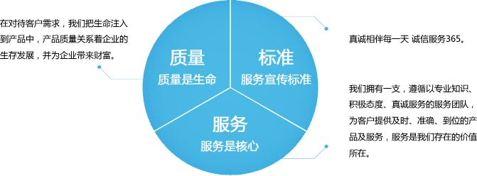 質(zhì)量是生存之本,服務(wù)是生存之道,市場(chǎng)是生命之源;以質(zhì)量求生存,以服務(wù)求發(fā)展!服務(wù)理念:以客戶為中心,盡心盡力為客戶服務(wù),客戶滿意是我們不變的承諾